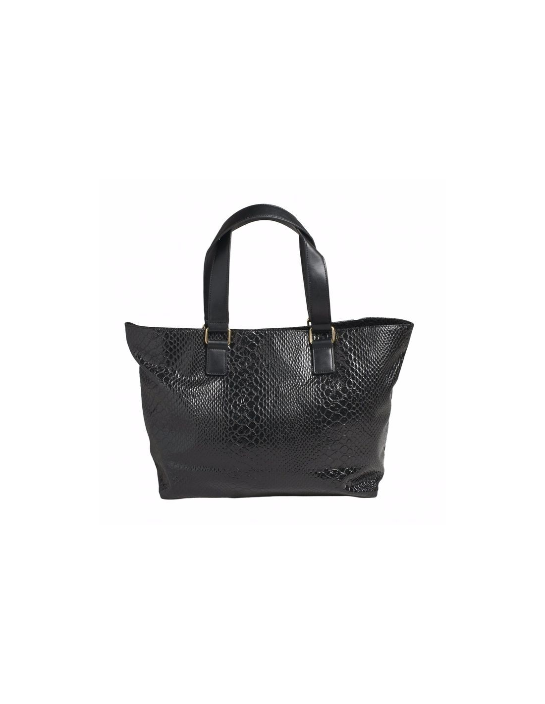 Práctico y elegante bolso negro piel sintética para mujer. Con asas cortas.