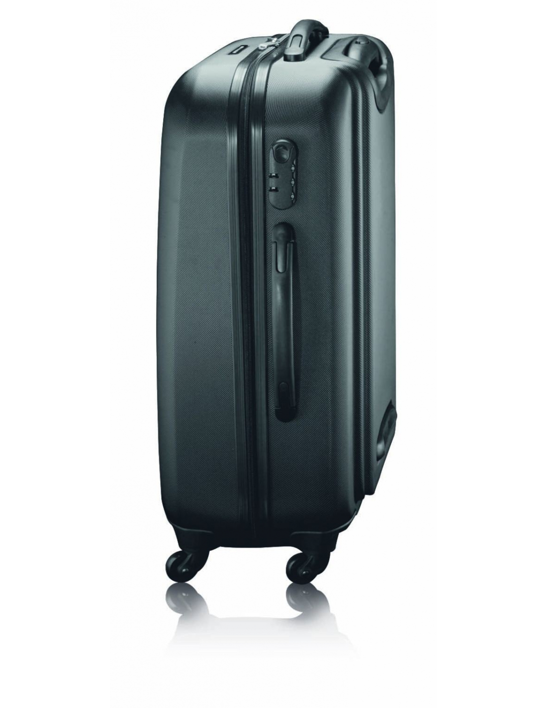 Trolley negro de ABS con 4 ruedas giratorias. Dimensiones: 43 x 68 x 26 cm